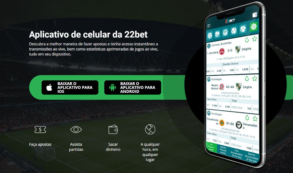 A 22Bet, assim como acontece com as principais casas de apostas, oferece um aplicativo para sua clientela.