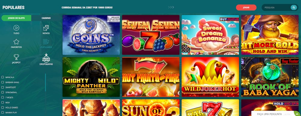 Há uma enorme oferta de jogos de cassino na 22Bet, com mais de 75 fornecedores de software que você pode contar com cerca de 7.500 ou mais jogos para escolher.