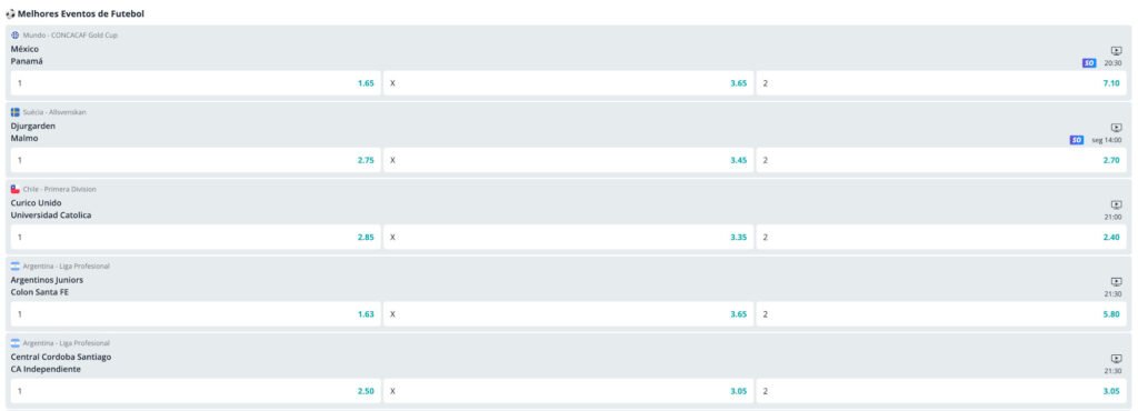 Ao criar uma conta na casa de apostas, o jogador terá acesso a uma extensa lista de eventos esportivos e uma variedade de opções de apostas.