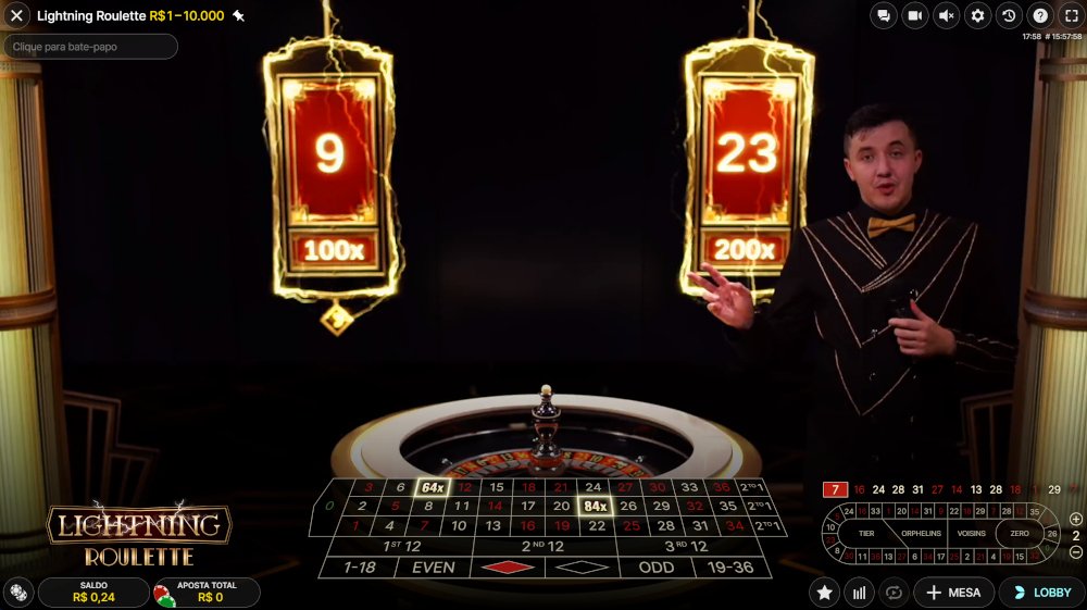 Lightning Roulette, da Evolution Gaming, reinventa a roleta clássica com um toque elétrico. Esta variação não só proporciona um ambiente de estúdio deslumbrante com apresentadores ao vivo, mas também introduz multiplicadores de até 500x em números escolhidos aleatoriamente.