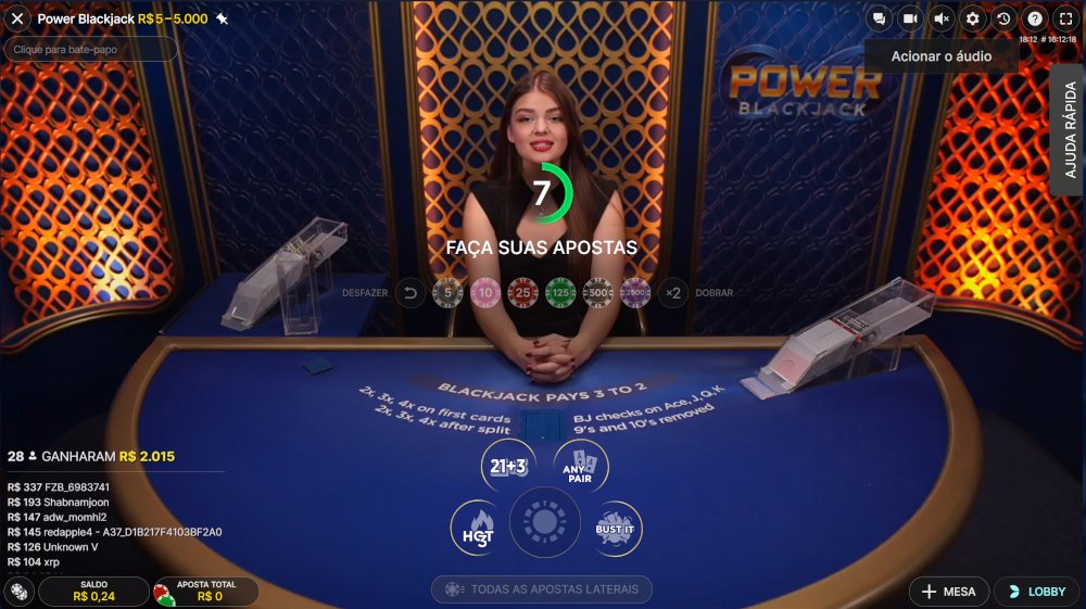 Power Blackjack é uma versão inovadora do tradicional blackjack. Com características distintas, como a capacidade de duplicar, tripliquem ou até mesmo quadripliquem sua aposta inicial após receber duas cartas iniciais e mesmo após uma divisão, este jogo oferece uma dinâmica única.