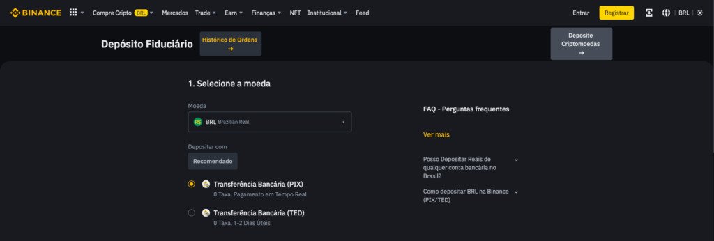 Depois de criar a sua conta, agora é hora de investir o seu dinheiro na Binance. Para isso, existem duas formas muito simples, transação via Pix ou via TED. Veja o passo a passo para cada uma delas: