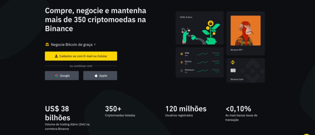 Então, agora vamos te mostrar como criar uma conta na Binance, a plataforma de criptomoedas mais popular de todo mundo, sendo altamente segura e também bastante simples de criar a sua carteira digital. Então, confira como fazer a sua conta agora mesmo: