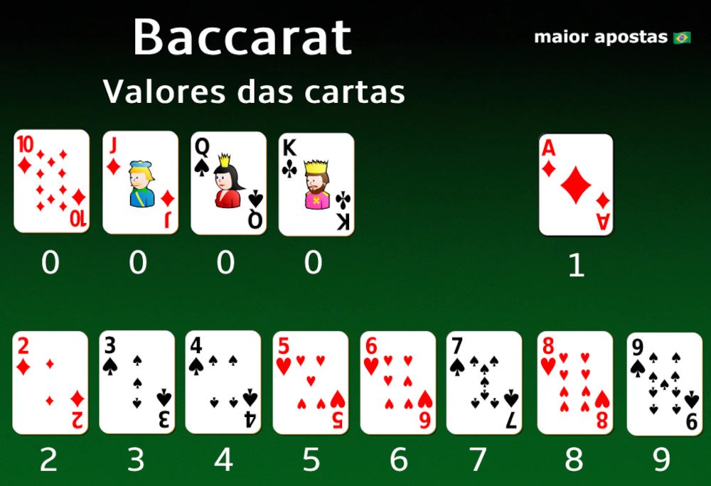 O Baccarat possui todas as cartas do baralho, com exceção do Joker (também conhecido como carta curinga) e pode ser jogado com 6 ou 8 cartas. Vejamos, a seguir, a pontuação específica das cartas: